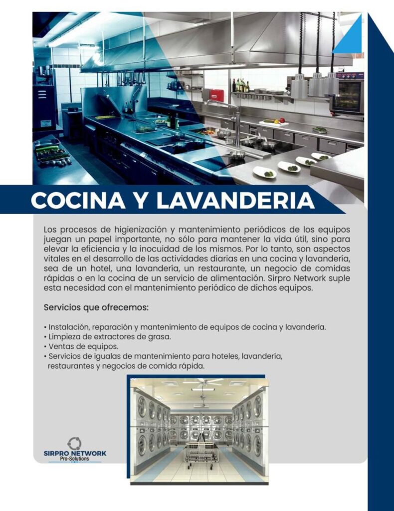 Los procesos de higienización y mantenimiento periódicos de los equipos juegan un papel importante, no sólo para mantener la vida útil, sino para elevar la eficiencia y la inocuidad de los mismos. Por lo tanto, son aspectos vitales en el desarrollo de las actividades diarias en una cocina y lavandería, sea de un hotel, una lavandería, un restaurante, un negocio de comidas rápidas o en la cocina de un servicio de alimentación. Sirpro Network suple esta necesidad con el mantenimiento periódico de dichos equipos.
